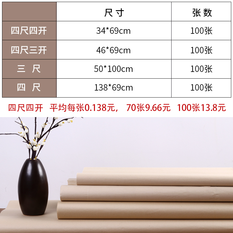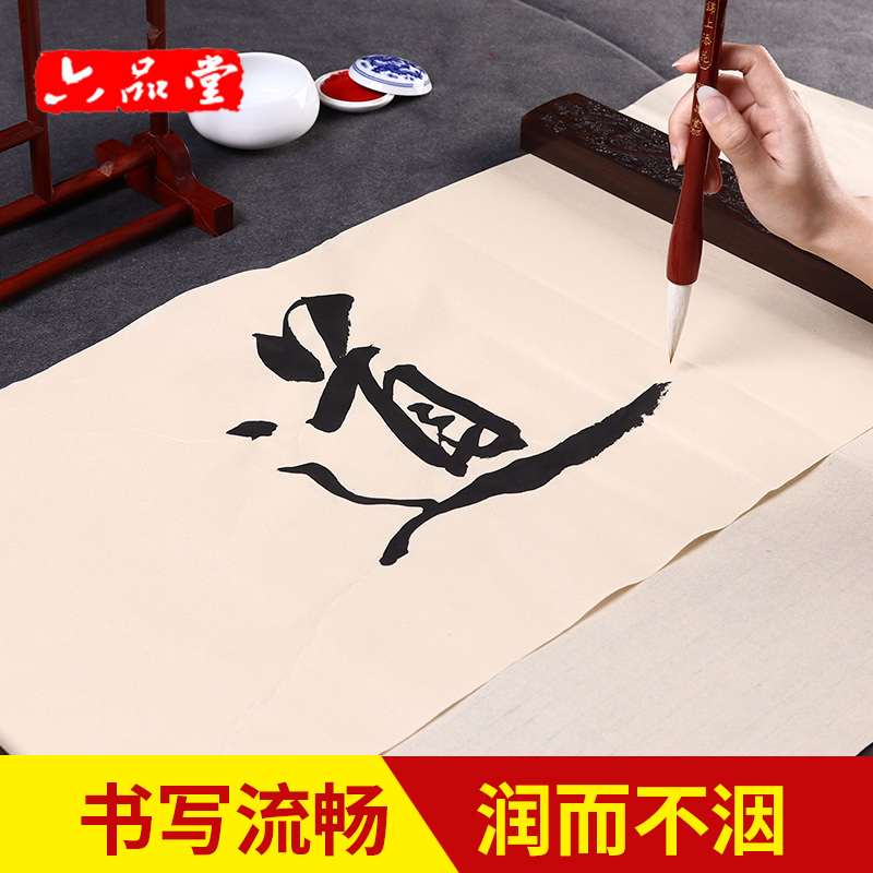 六品堂加厚手工毛边纸书法练习专用无格仿古宣纸练毛笔字纸纯竹浆元书纸写毛笔字半生半熟四尺六尺书写练字