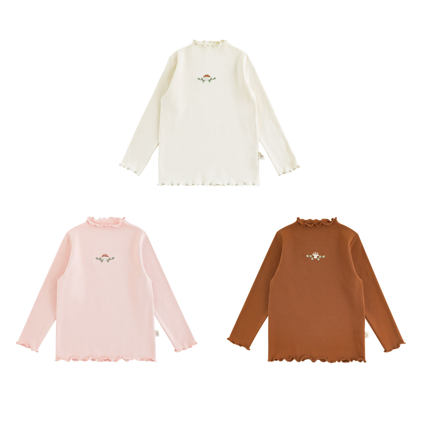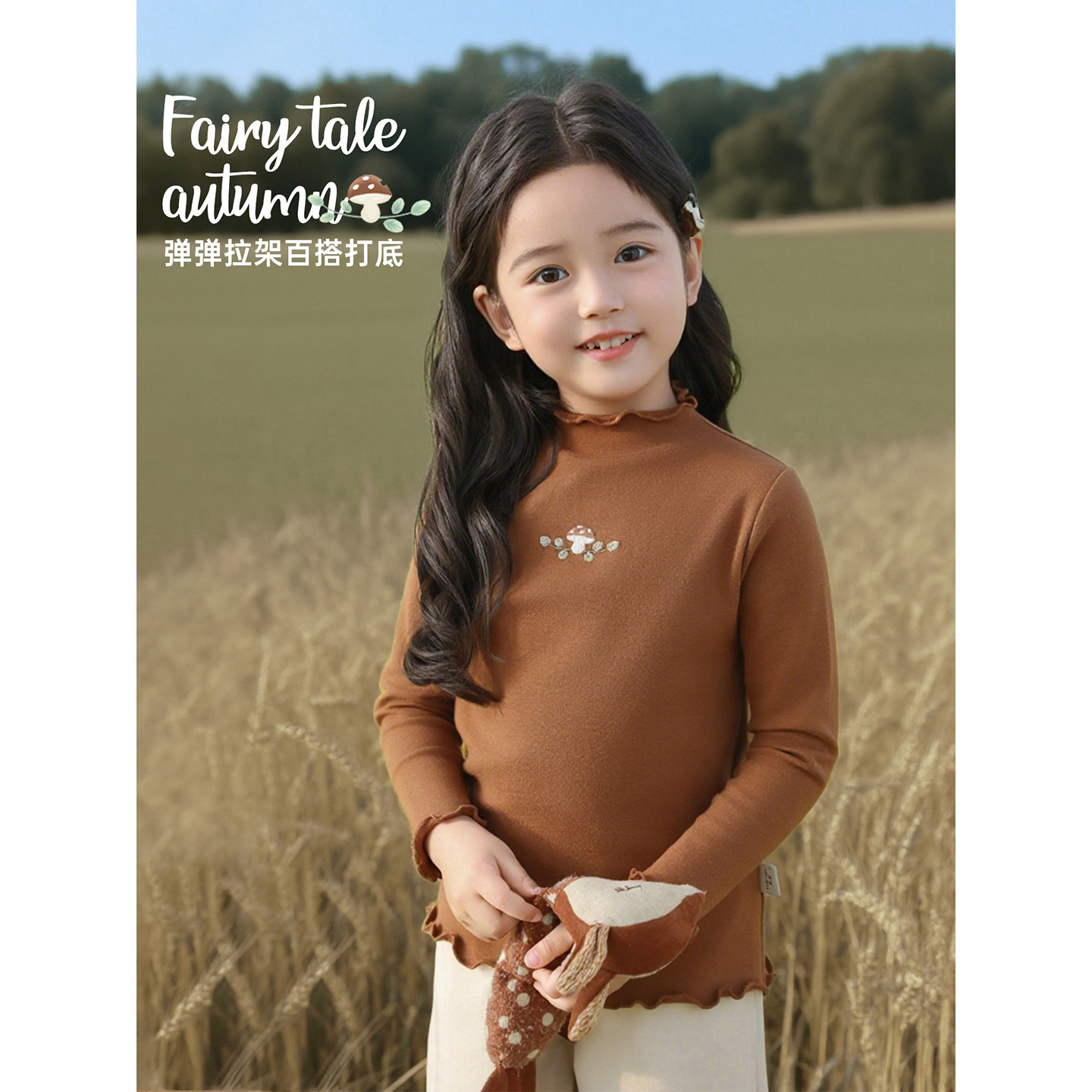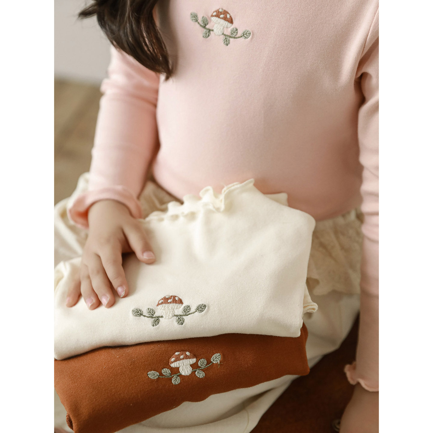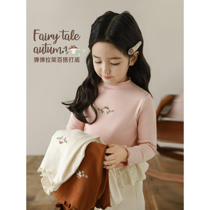 幼悠女童蘑菇绣花打底衫秋季元气可爱舒适半高领柔软亲肤休闲上衣