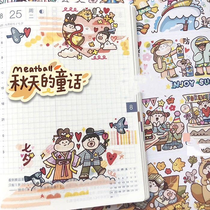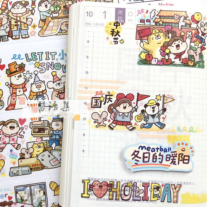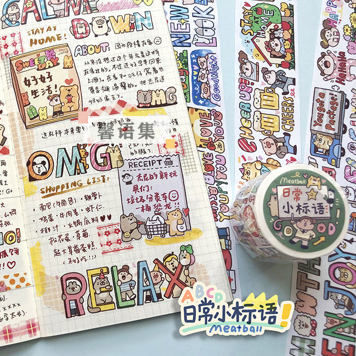 Meatball肉球正品2020春季新品手帐胶带可爱人物框框标题分装整卷