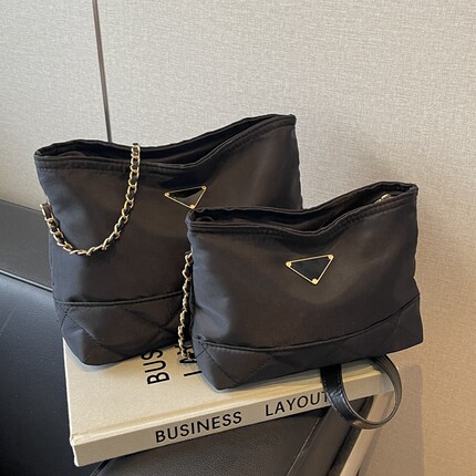 菱格链条水桶包包女2025新款高级感时尚单肩包尼龙布百搭斜挎女包