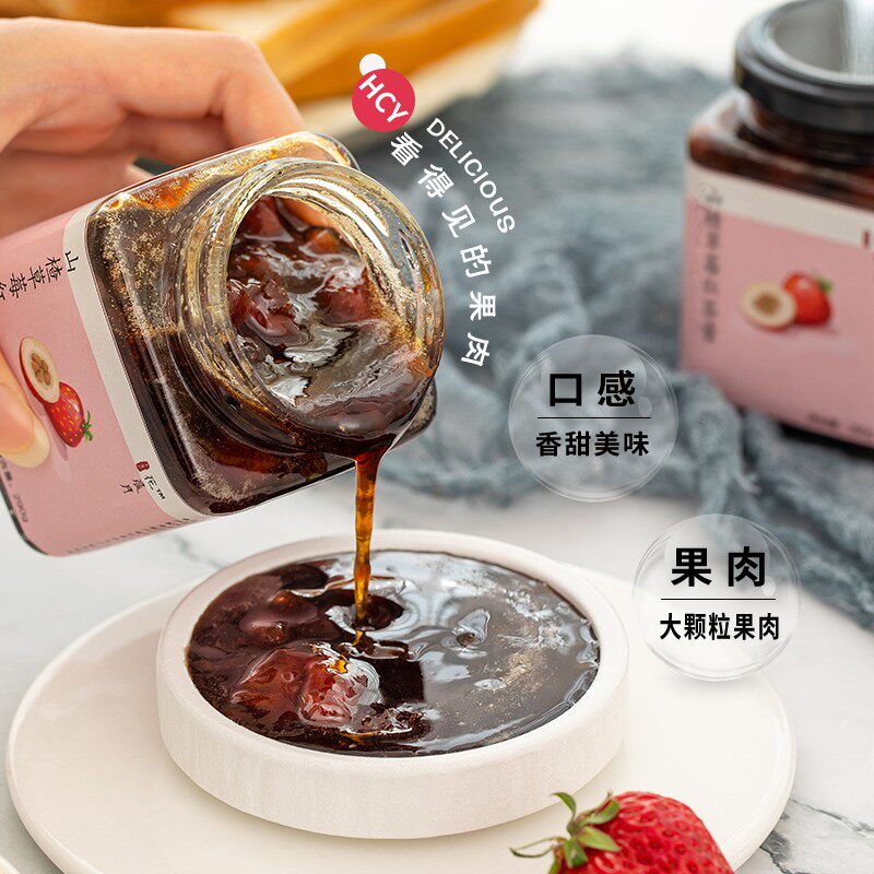 大颗粒果肉山楂草莓果酱鲜果纯熬