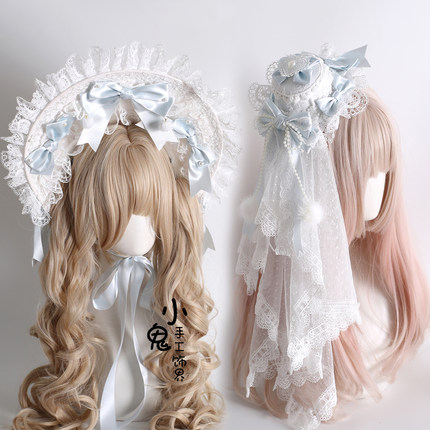原创圣诞H白蓝Lolita波奈特蕾丝发带洛丽塔小礼帽花丸兔耳发箍KC