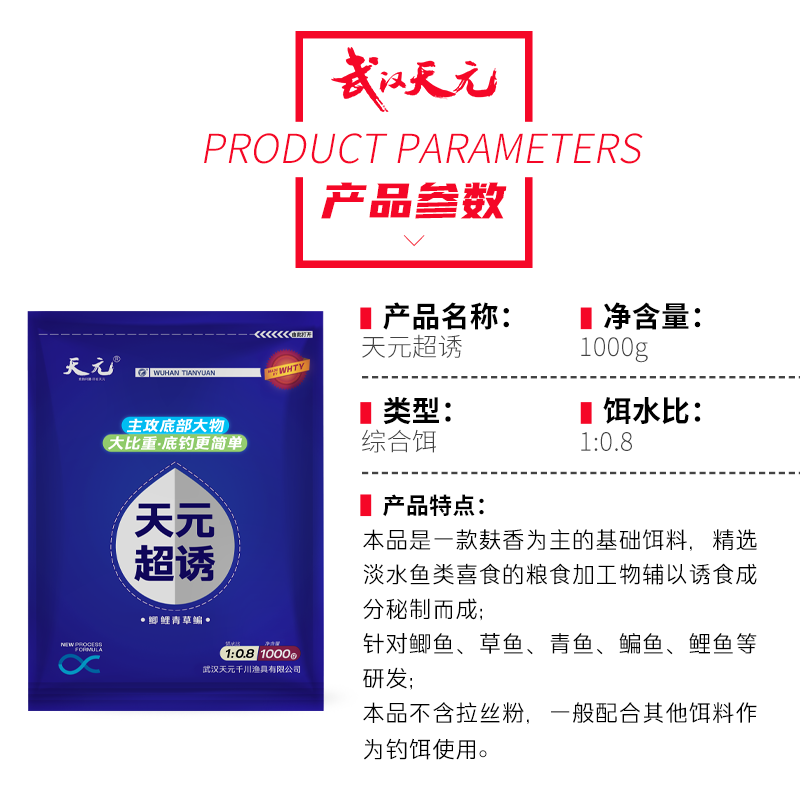 武汉天元超诱1000g麸香味型诱鱼拉搓饵添加剂小药综合饵鱼饵饵料