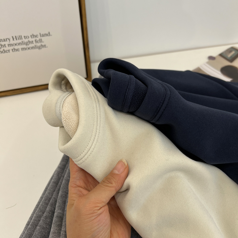 韩版复古字母刺绣简约双面绒圆领套头卫衣女宽松加绒加厚上衣冬季