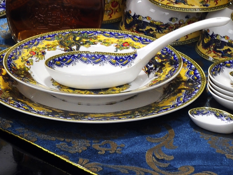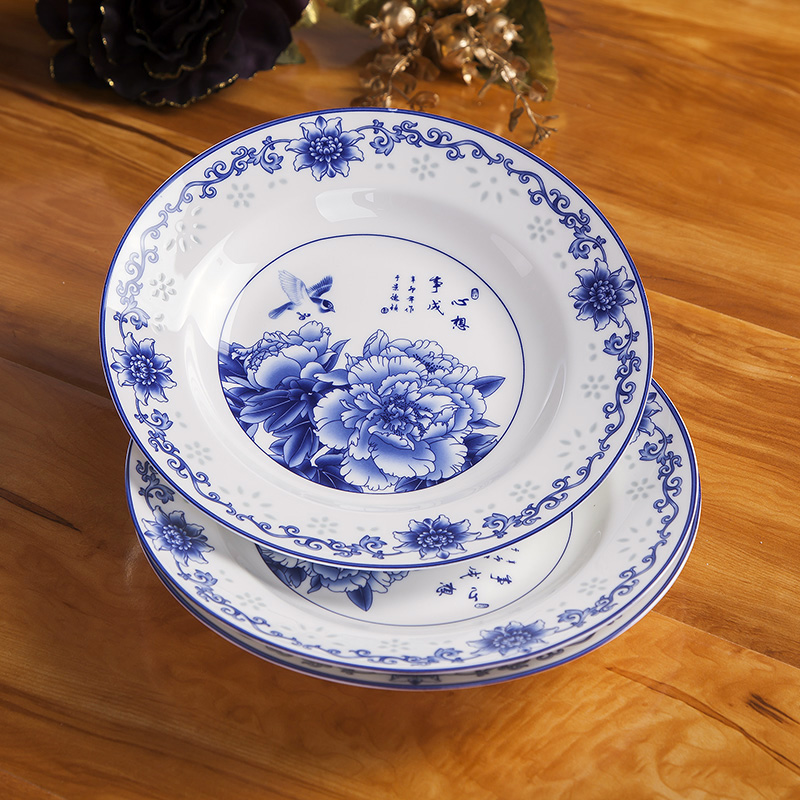 景德镇高档骨瓷质餐具盘青花深盘8英寸菜盘子碗盘碟餐具套装盘子