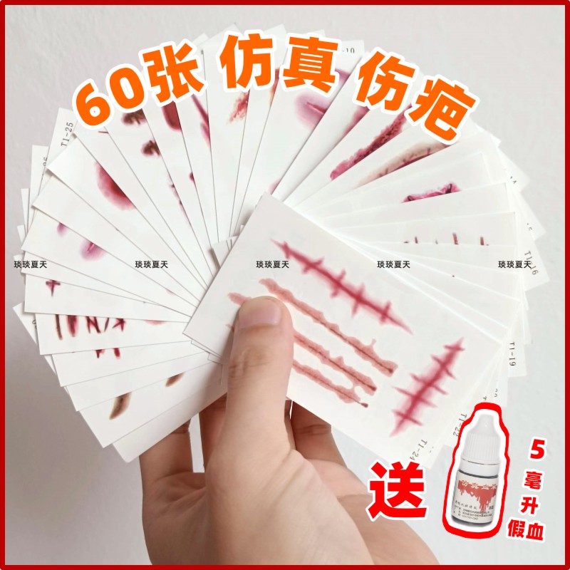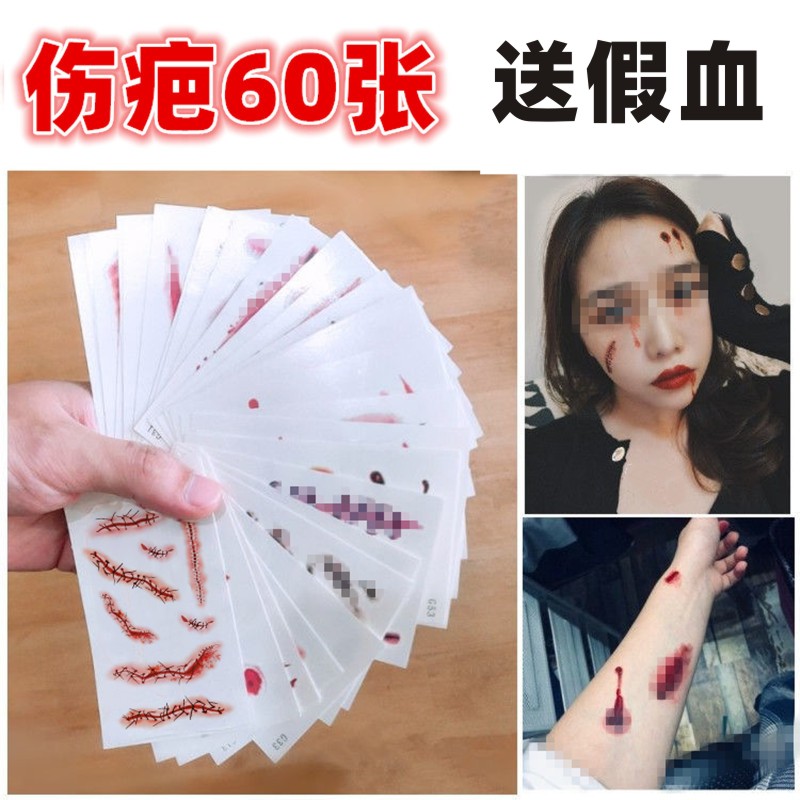 万圣节脸部贴纸装饰纹身贴妆容化妆淤青贴恐怖伤痕伤疤仿真