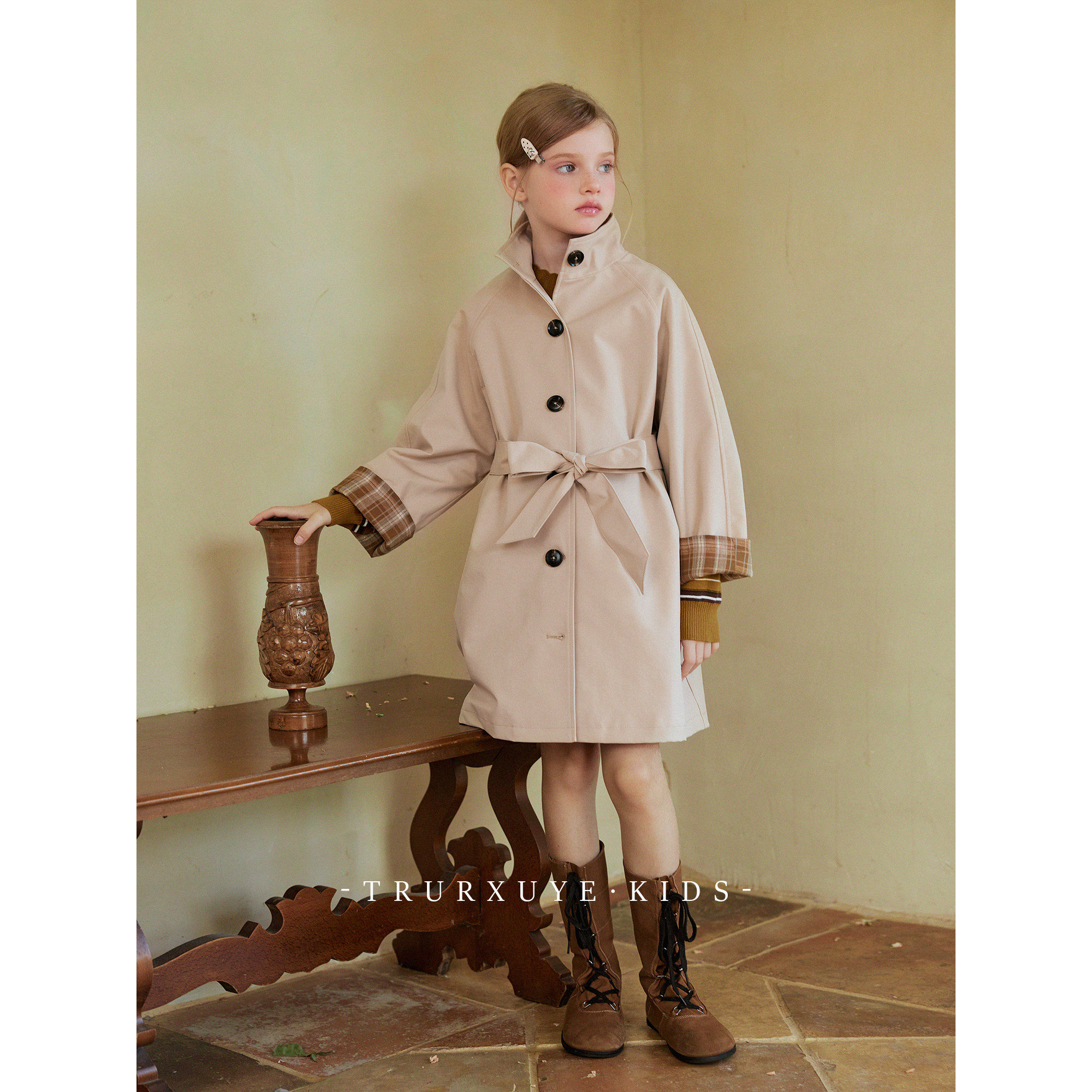 初煦女童英伦风中长款风衣