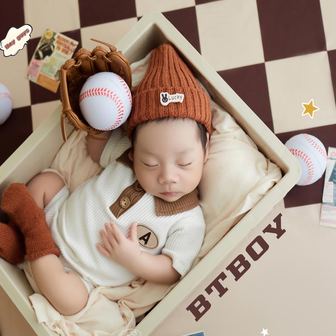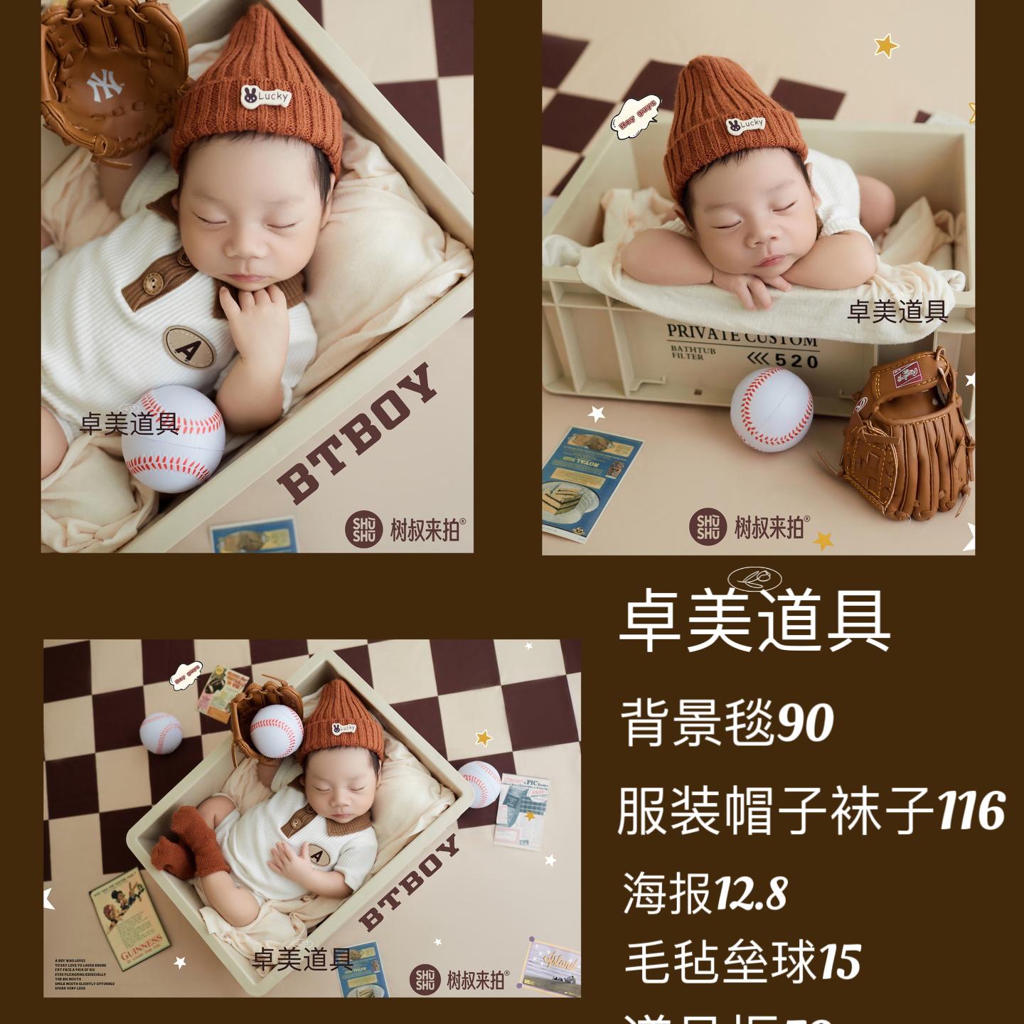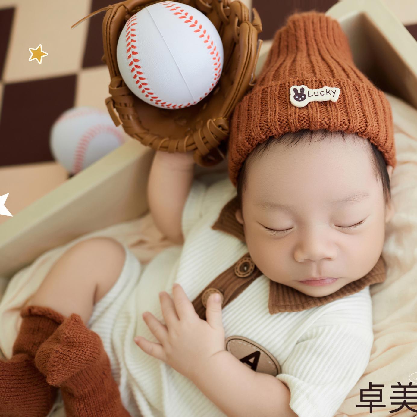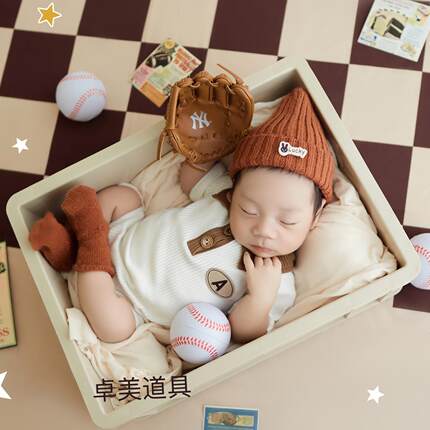 卓美新生儿拍照衣服棒球主题满月照儿童摄影服装道具宝宝百天照