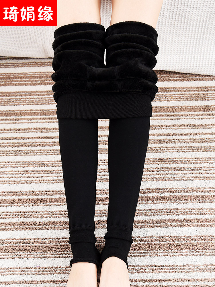 秋冬加厚打底裤加绒外穿高腰大码女裤黑色小脚长裤踩脚保暖裤冬季