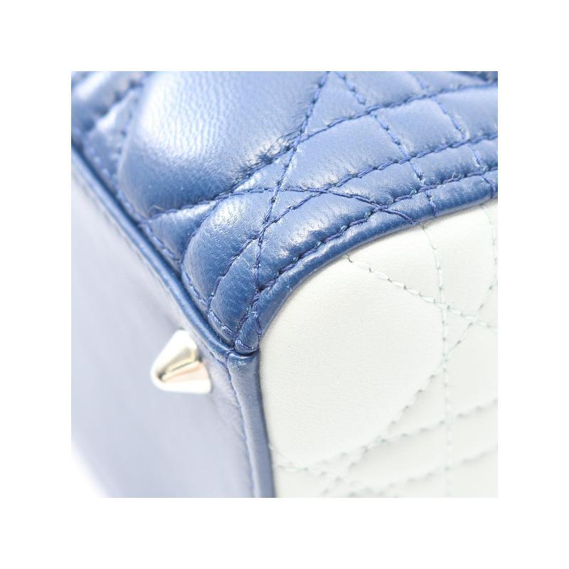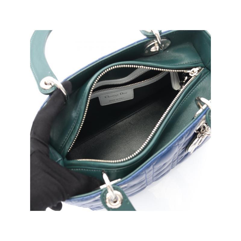 中古Dior迪奥女包A级95新Lady Dior戴妃包羊皮手提包蓝色RECLO