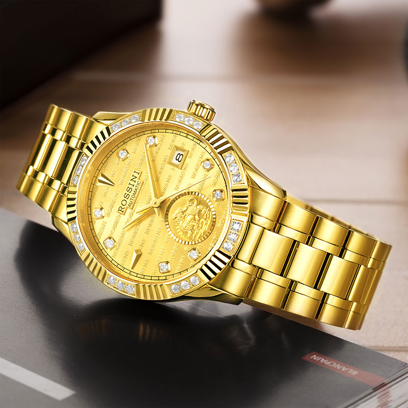 罗西尼正品手表自动机械精钢经典大气男表貔貅情侣足金表8705T01A