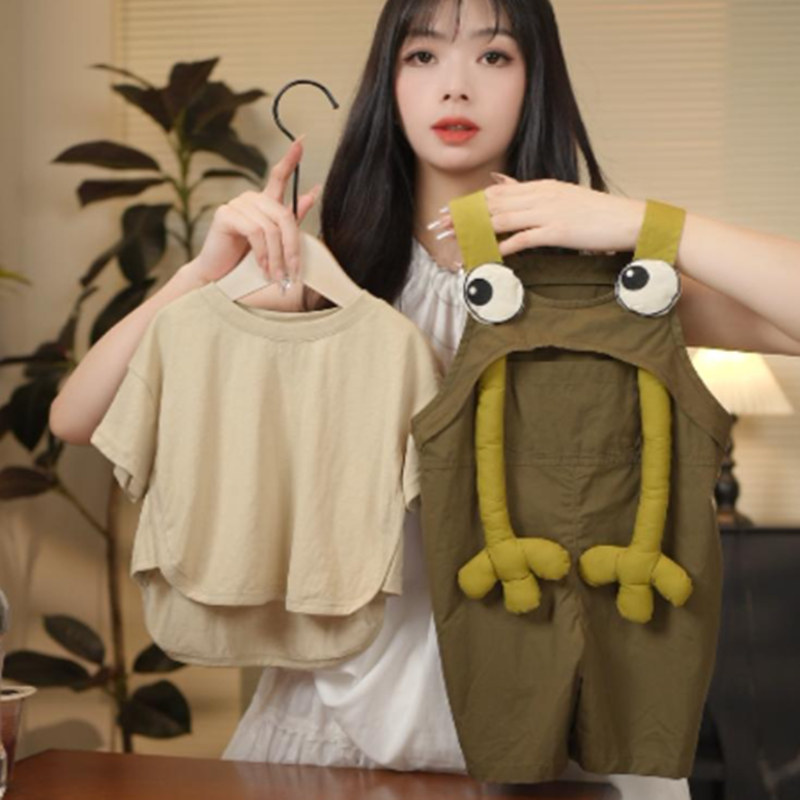 2025夏季套装新款儿童背带裤男童女童时尚宽松百搭短袖卡通两件套