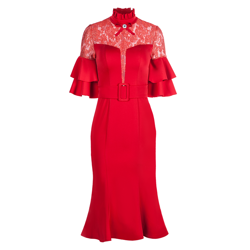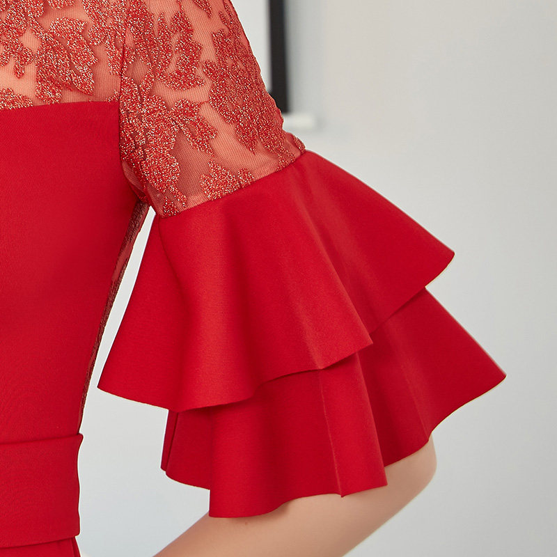创意狐2024新款新娘敬酒服生日宴会小礼服红色短款荷叶边连衣裙女