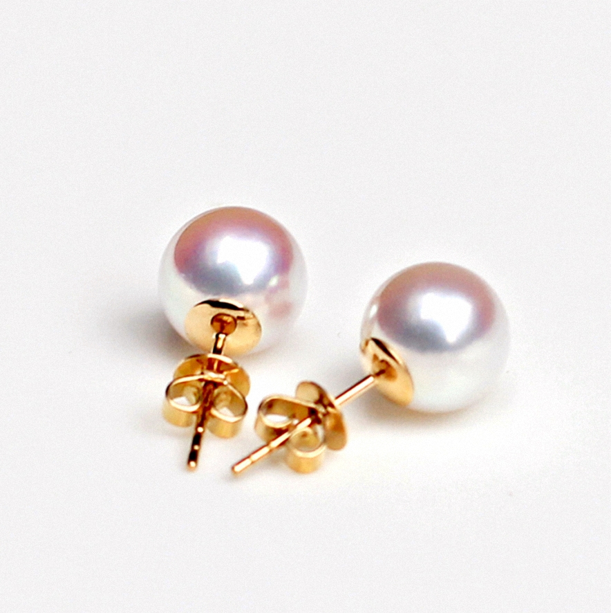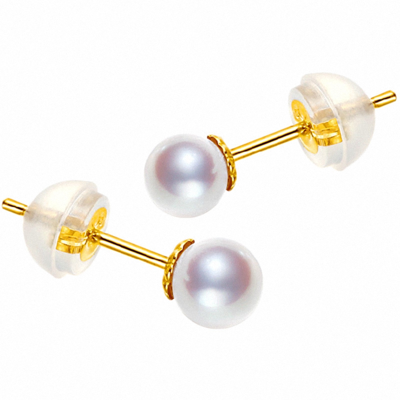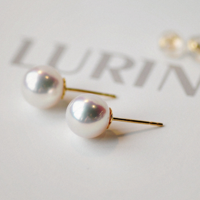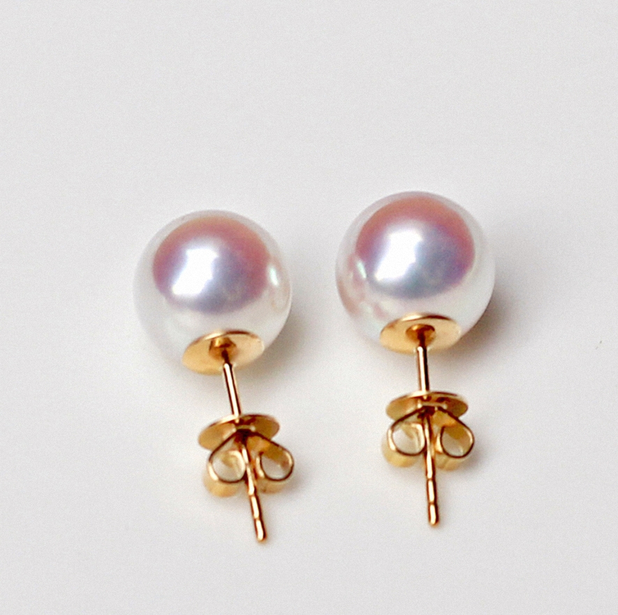 日本akoya海水珍珠耳钉 女纯银镀黄金色耳环18.K耳饰气质简约礼物