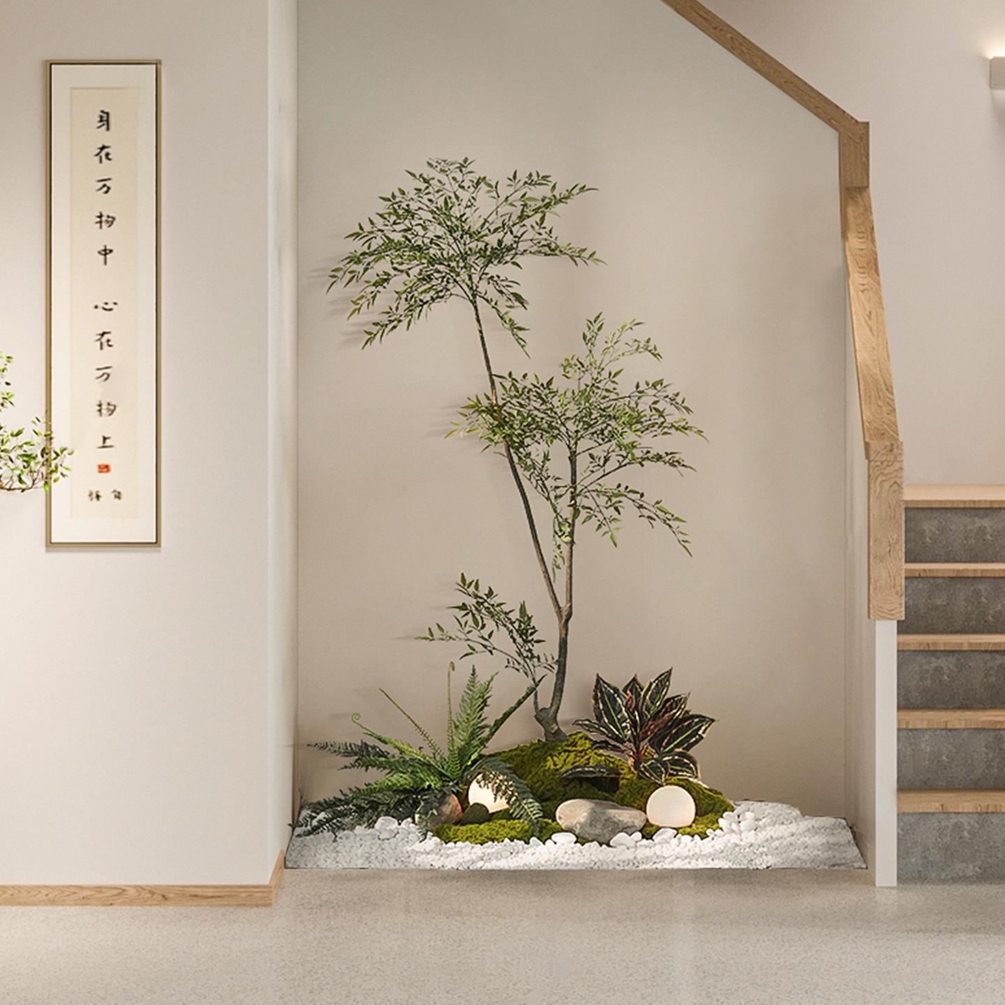 森空间彷真绿色植物造景入户楼梯橱窗微景观玄关角落植物摆件苔藓