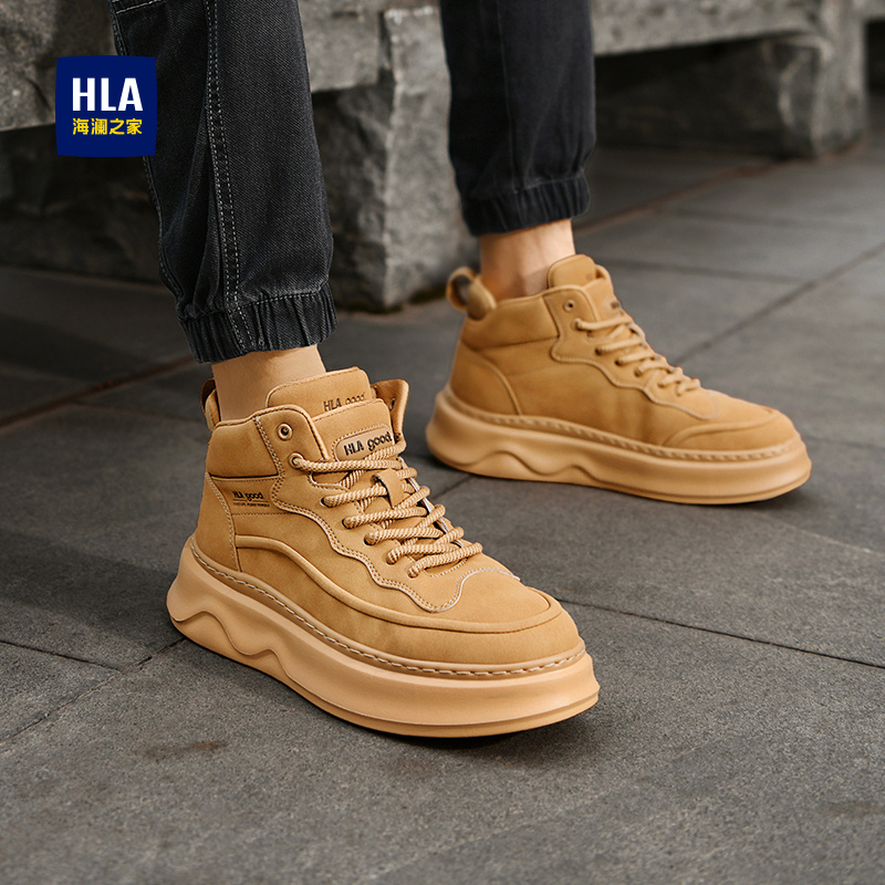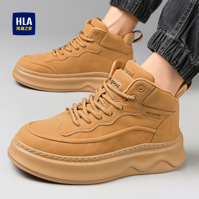 HLA/海澜之家高帮男鞋2024新款冬季黄色运动板鞋男士潮流休闲鞋子