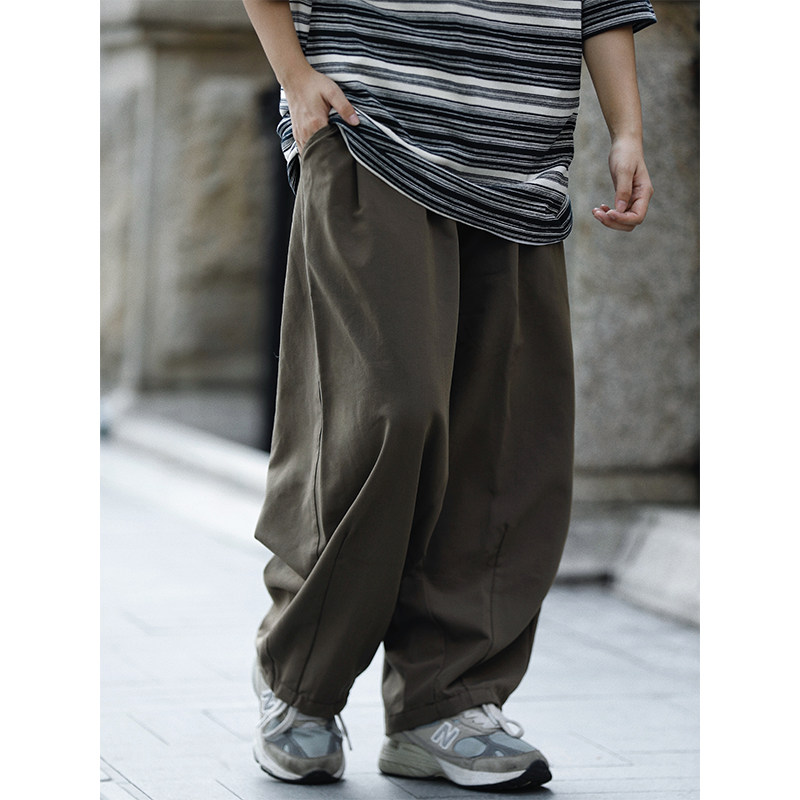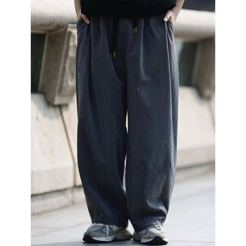 阿于呆日系复古垂感纯色阔腿西裤男夏季潮牌街头宽松高级长裤女