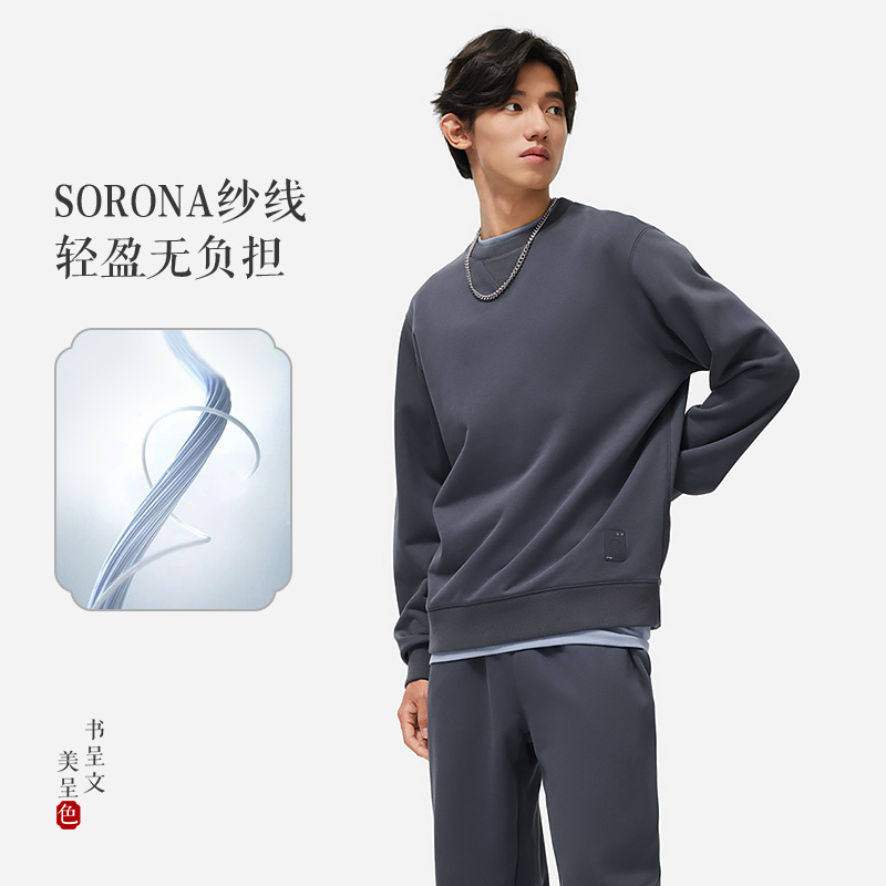 李宁男子卫衣春季款纯色中国色系列无帽圆领运动休闲上衣AWDU029