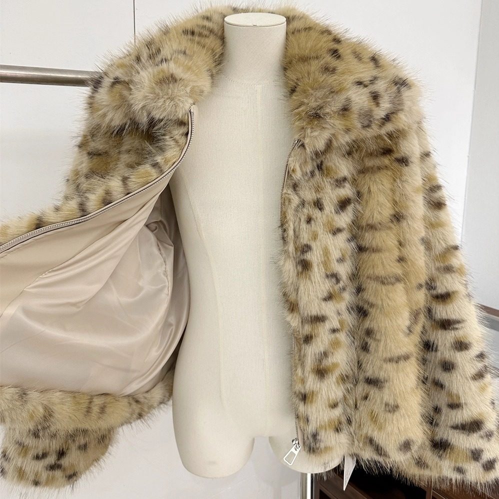 Skk Store 性感小豹 田曦薇豹纹进口奢贵貉子毛皮草/环保毛毛外套