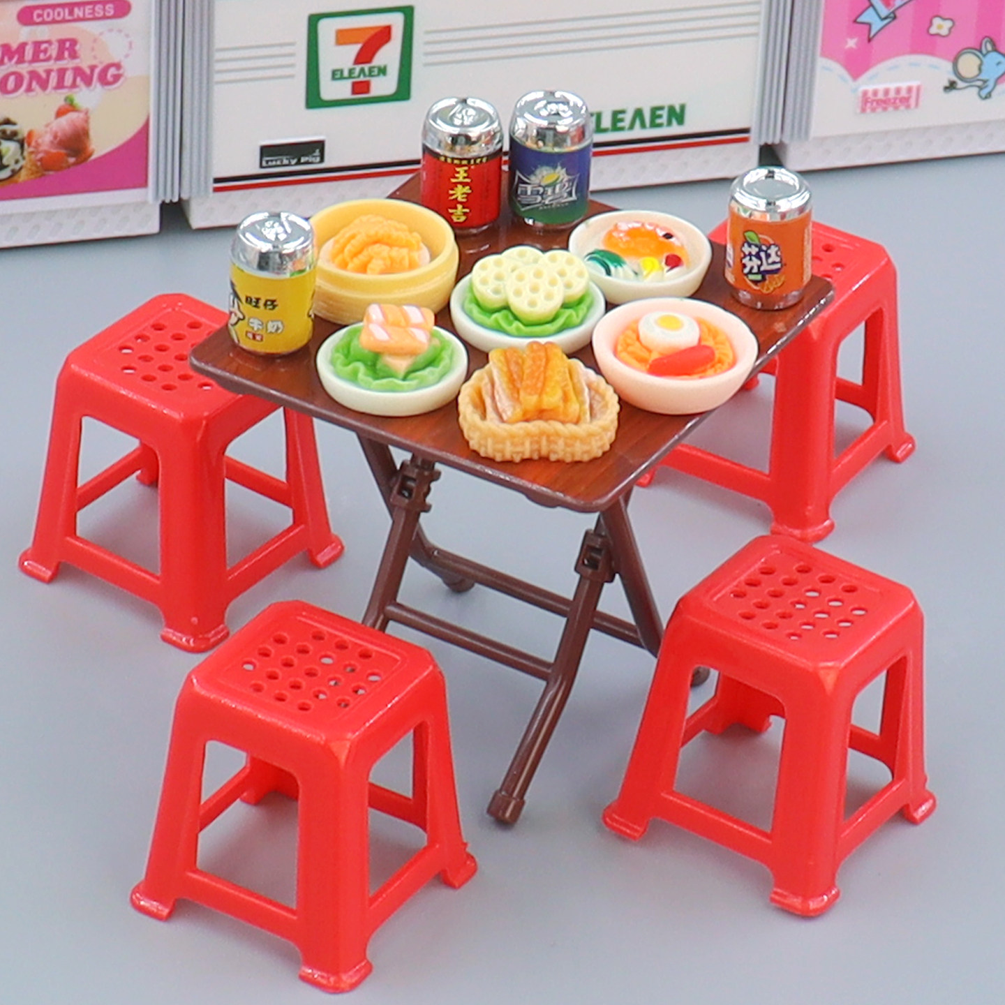 迷你折叠桌子仿真食玩微缩模型小餐桌摆件娃娃屋场景过家家小玩具