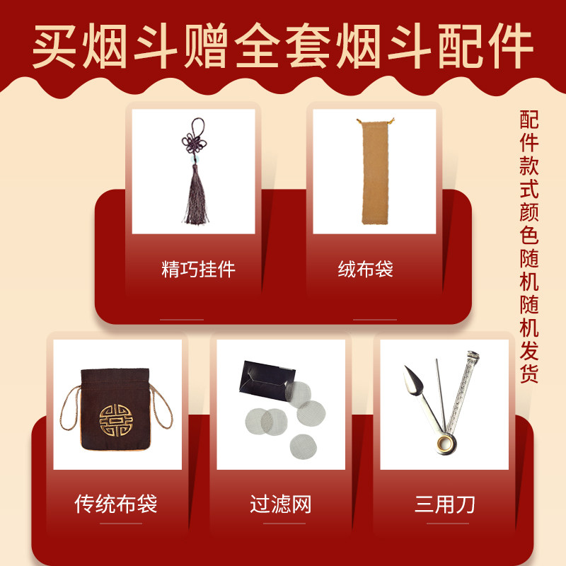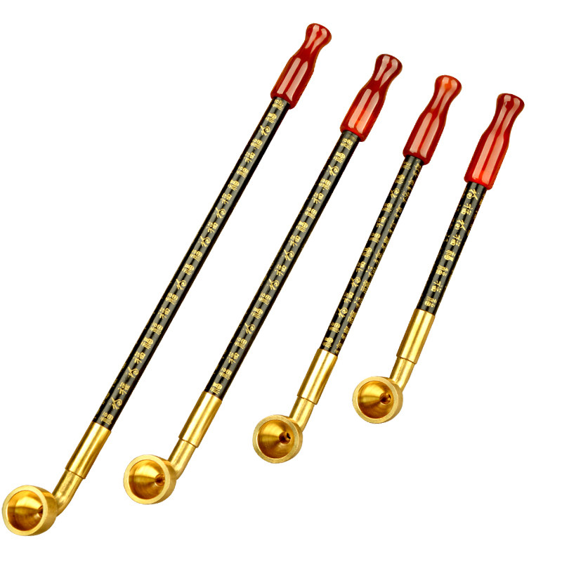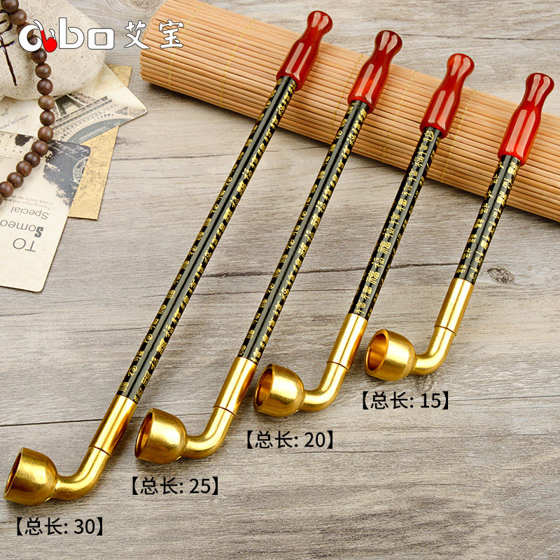 艾宝老式手工百福实木烟杆黄铜旱烟袋锅子短款烟斗男士烟斗烟具