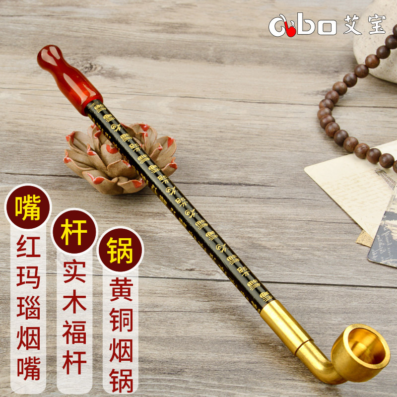 艾宝老式手工百福实木烟杆黄铜