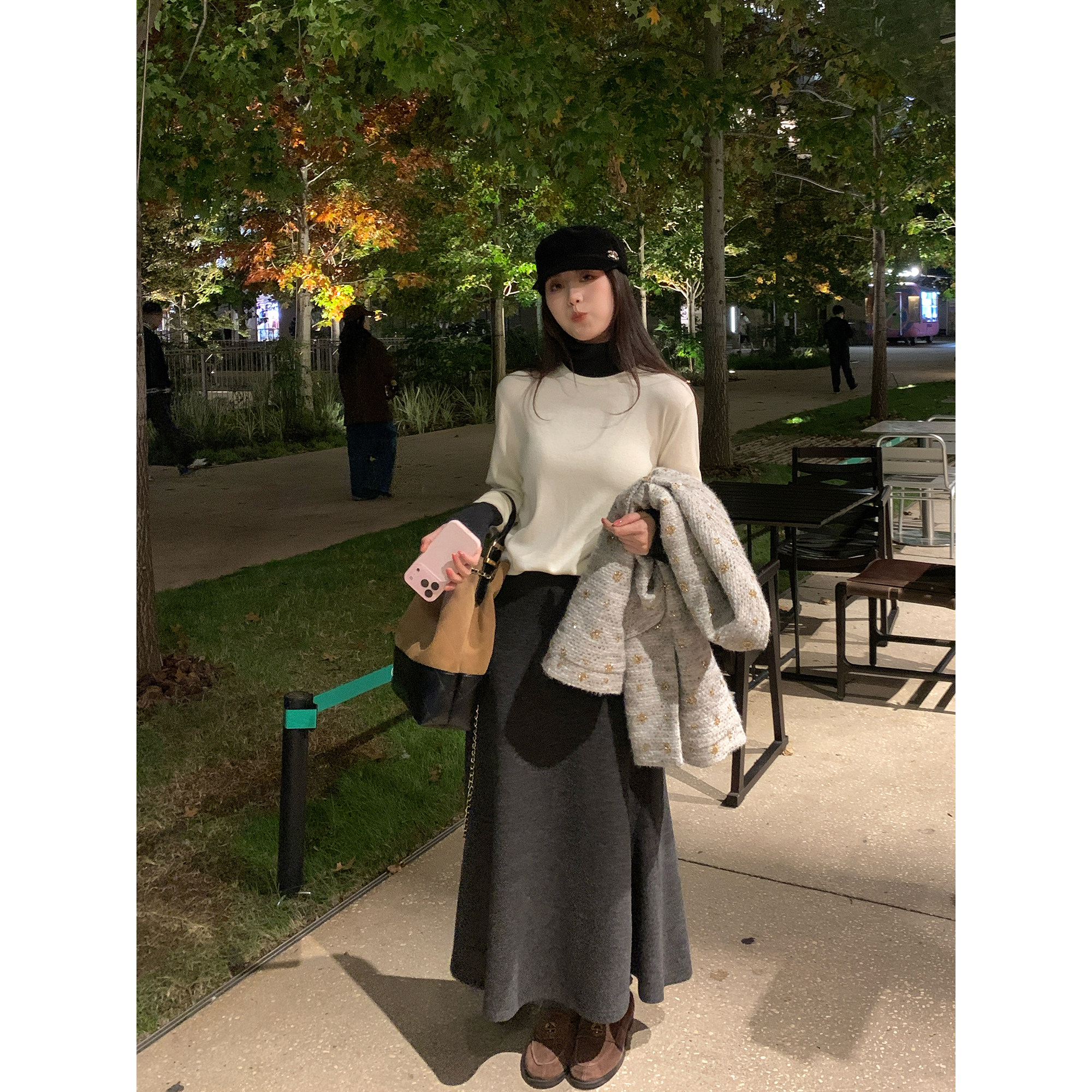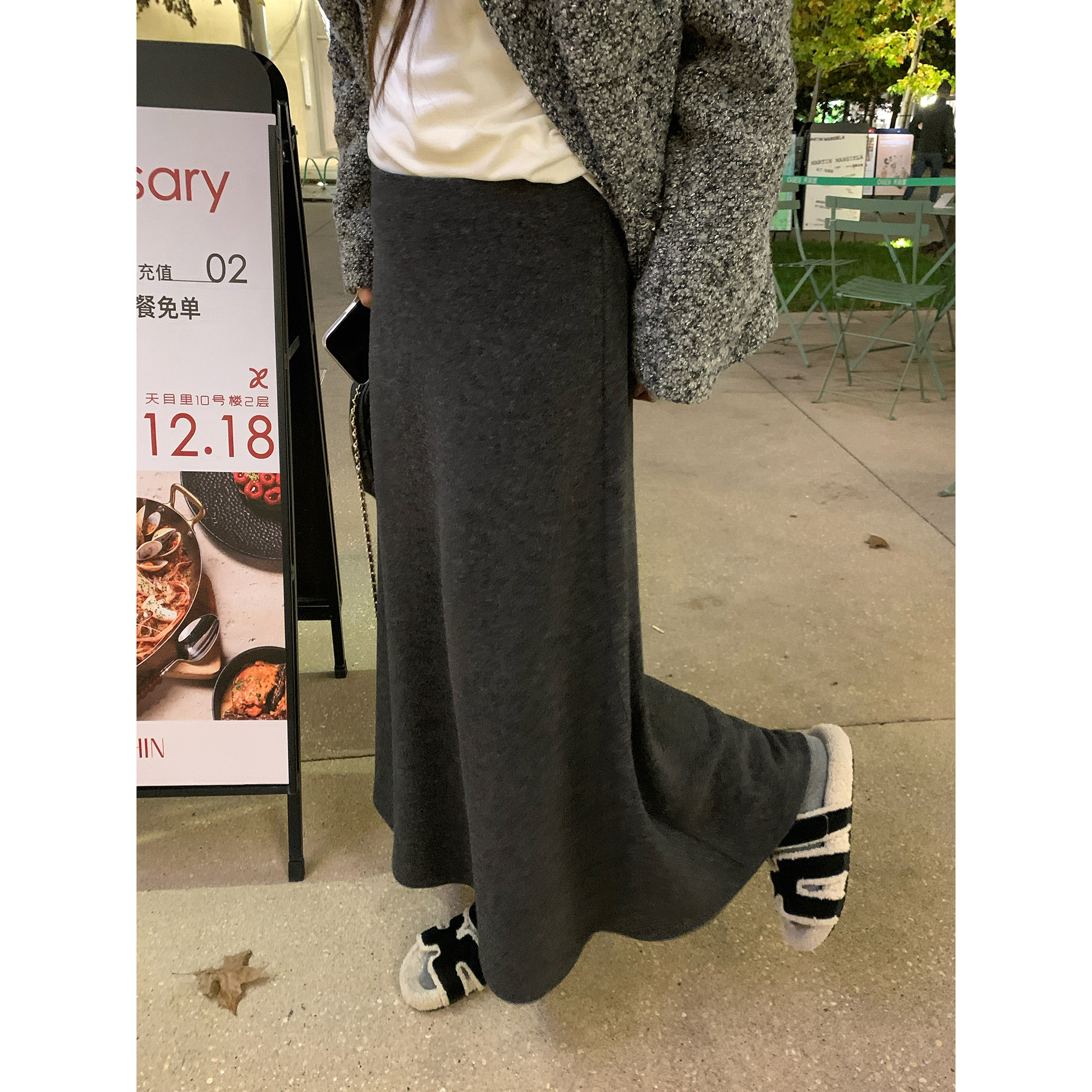 NAZ那子大码冬装加绒微弹保暖鱼尾裙胖mm高腰气质显瘦A字半身裙