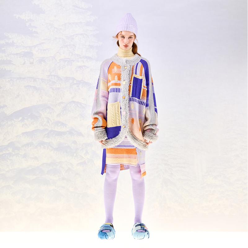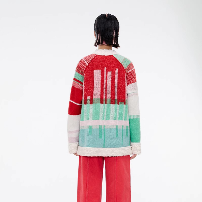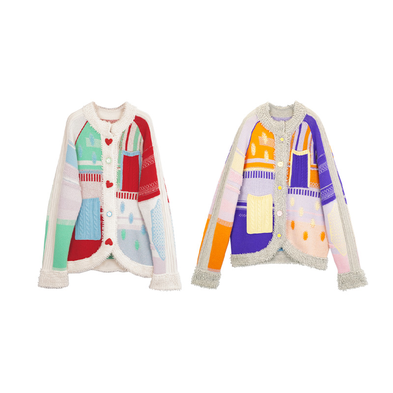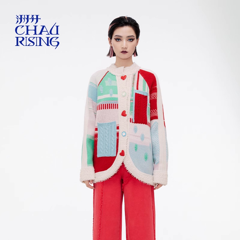 洲升/CHAU.RISING秋冬圈圈领撞色羊毛长开衫毛衣外套设计师原创女