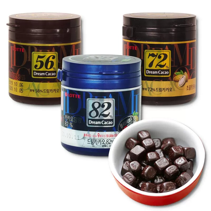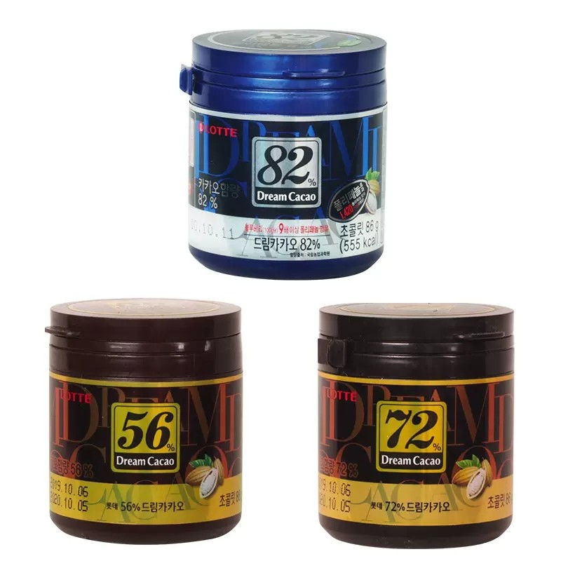 零食专区韩国进口乐天梦黑巧克力56%72%82%罐装外国原装巧克力豆