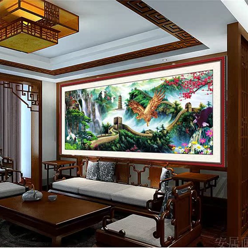 中堂画万里长城山水画电视背景墙客厅无纺布墙纸A023壁纸壁画