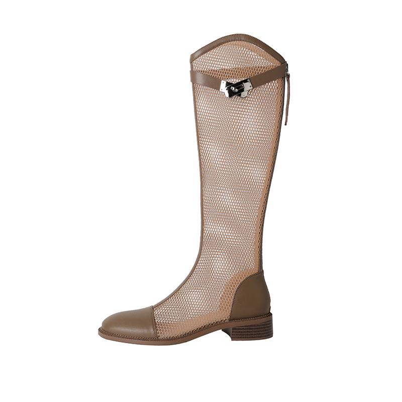靴子女夏季网靴新款低跟透气镂空长靴真皮高筒凉靴大码4041凉鞋子
