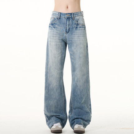 MADWITCH复古浅色微喇牛仔裤男女美式休闲水洗做旧cleanfit长裤子