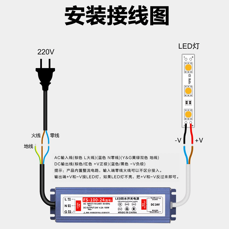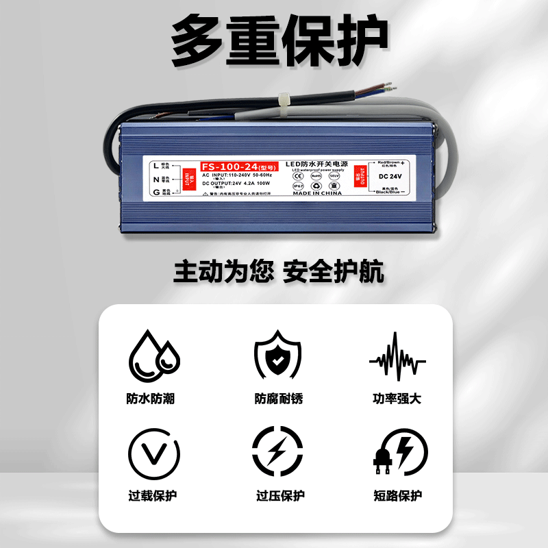 220V转12V24V直流LED超薄防水电源10W20W36W400W500W户外变压器