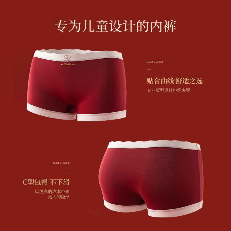 猫人儿童本命年内裤女童纯棉红色四角裤不夹屁屁2025蛇年平角短裤