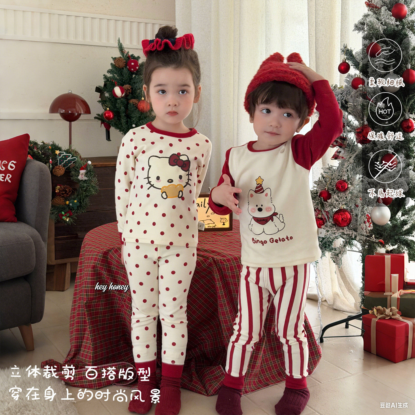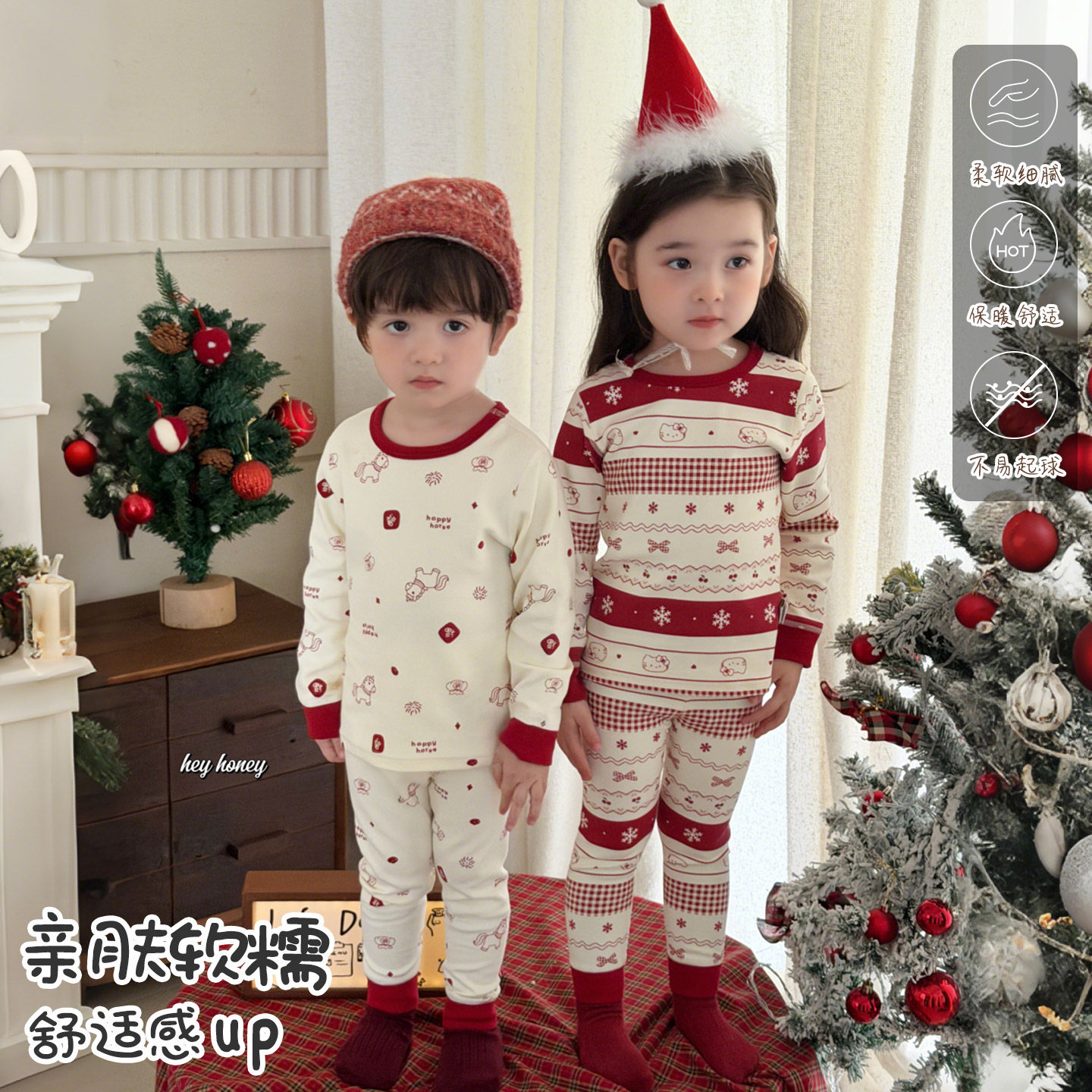 嘿甜心儿童A类家居服套装秋冬新款纯棉宝宝秋衣秋裤男童女童睡衣