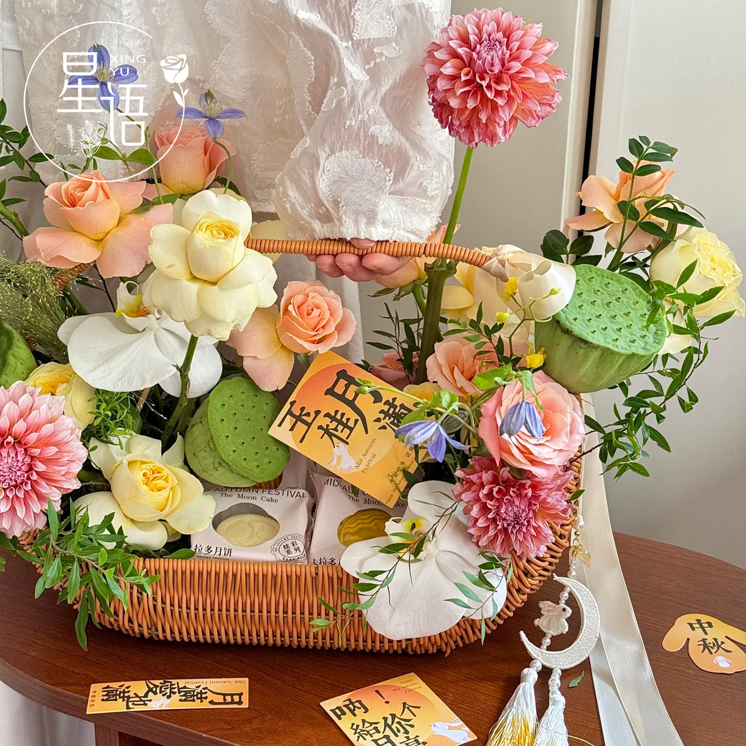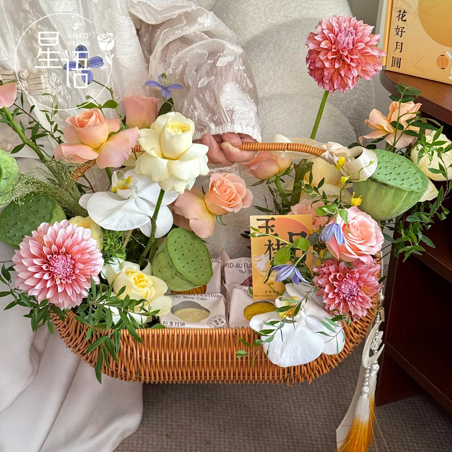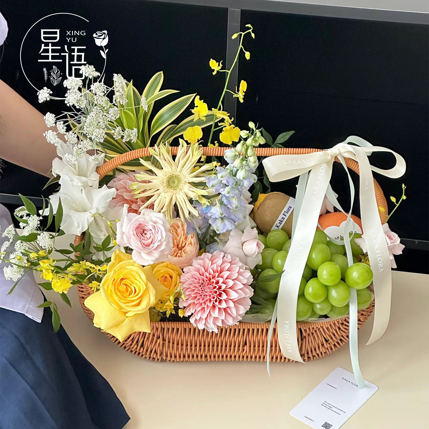 法式花篮 鲜花篮水果手提篮花艺DIY插花篮包装礼盒法式竹编花盒