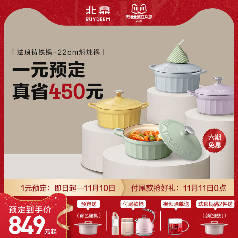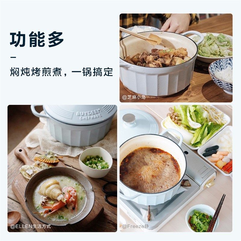 北鼎珐琅锅铸铁煲汤家用s焖炖锅多功能炒锅进口平底锅具电磁炉蒸