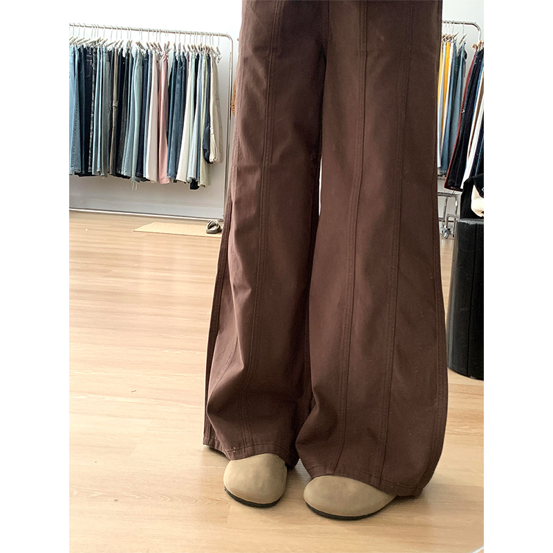 大码胖mm高腰宽松棕色工装牛仔裤女秋冬小个子垂感直筒阔腿休闲裤