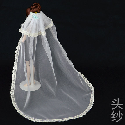 30厘米换装洋娃娃婚纱礼服的配件豪华梦幻超长头饰头纱