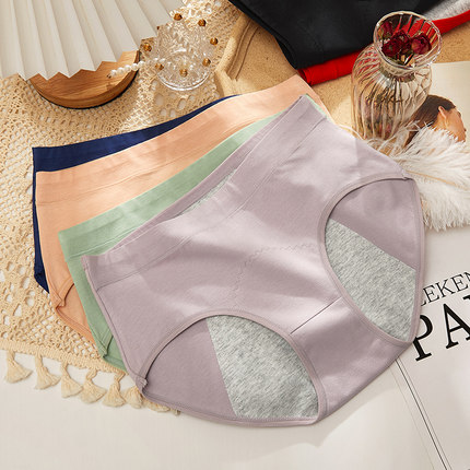 4条 生理内裤女士月经期防漏大码纯棉抗菌裆侧防漏前后防漏姨妈裤