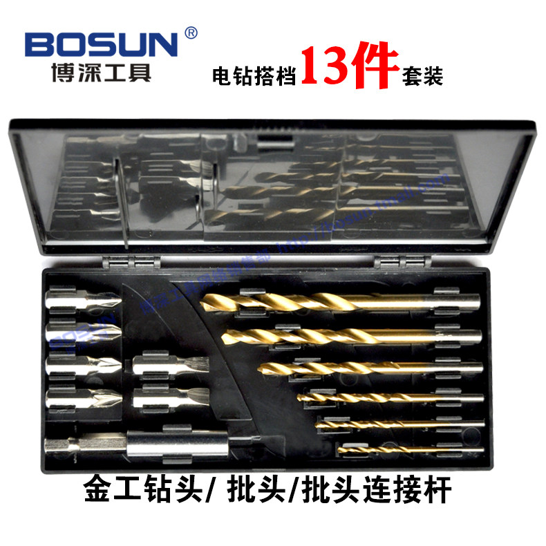 博深新款批头13件套装 电钻配件 含麻花钻头加工杆电钻 批头 套装
