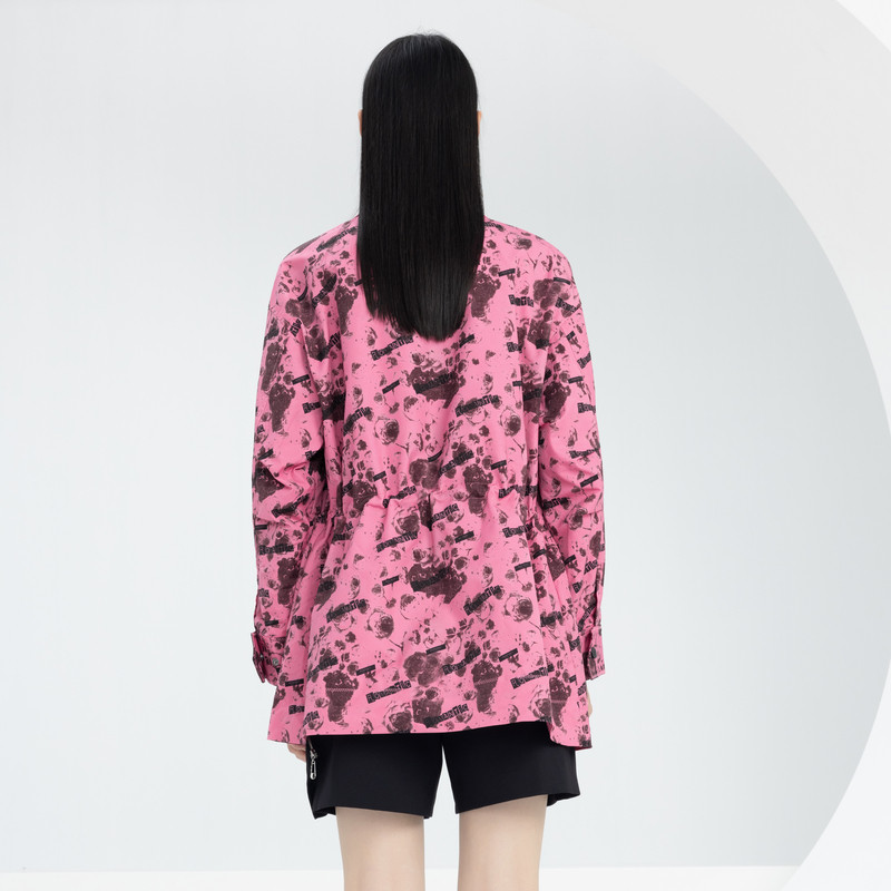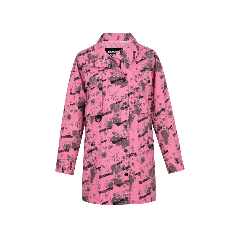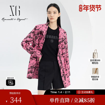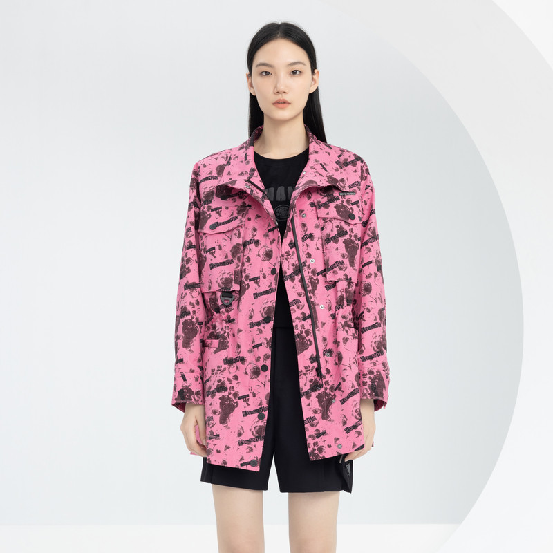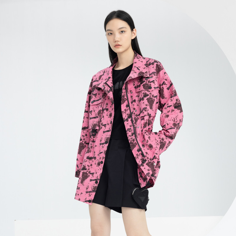 XG/雪歌XJ108015B393满版印花长袖风衣时尚春季新款中长款外套女