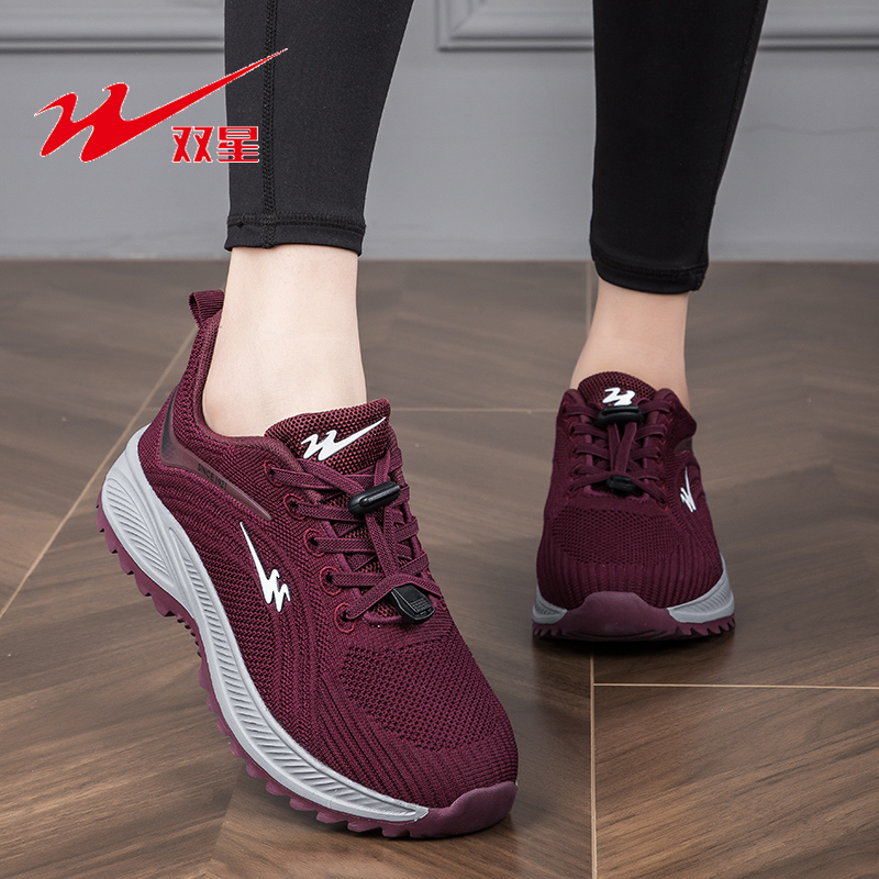 双星女鞋春秋网面透气运动鞋女舒适妈妈休闲旅游鞋防滑软底跑步鞋