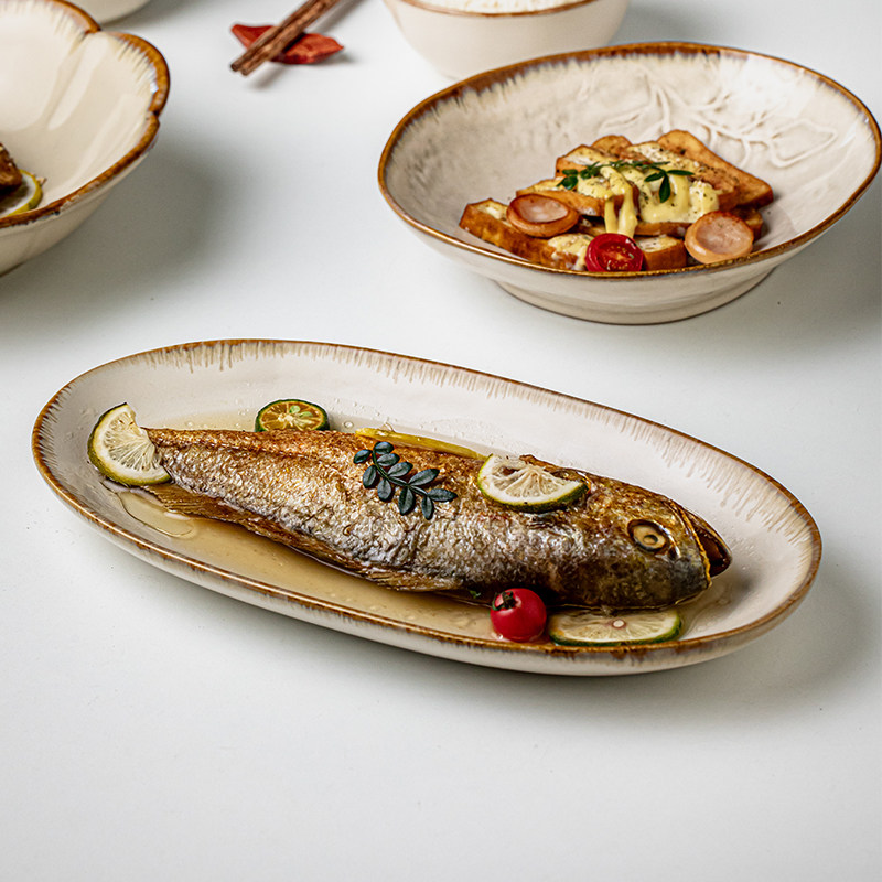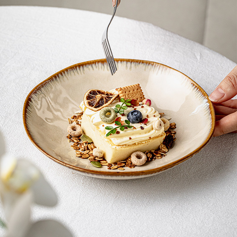 芦苇〖黄卡夫系列〗复古陶瓷碗碟高颜值饭碗家用菜盘乔迁窑变餐具