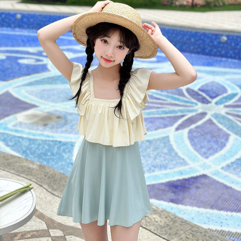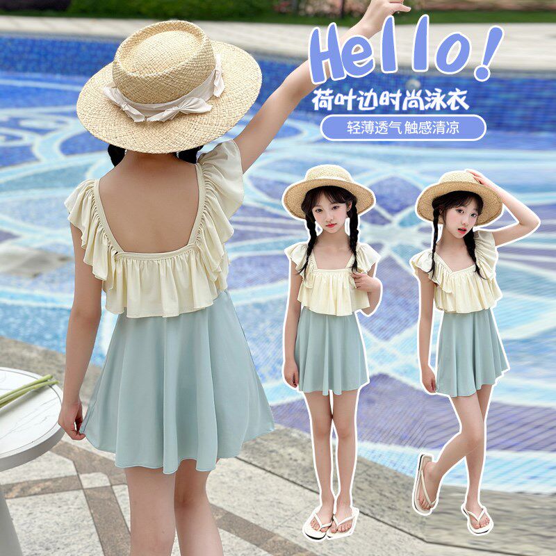 女童泳衣夏季2025新款儿童洋气连体裙式泳装女大童网红吊带游泳衣