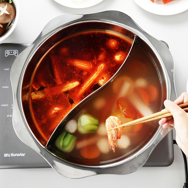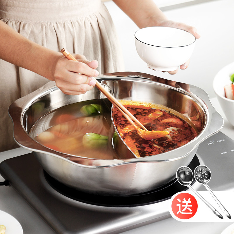 onlycook 食品级304不锈钢火锅盆鸳鸯锅家用商用汤锅电磁炉专用