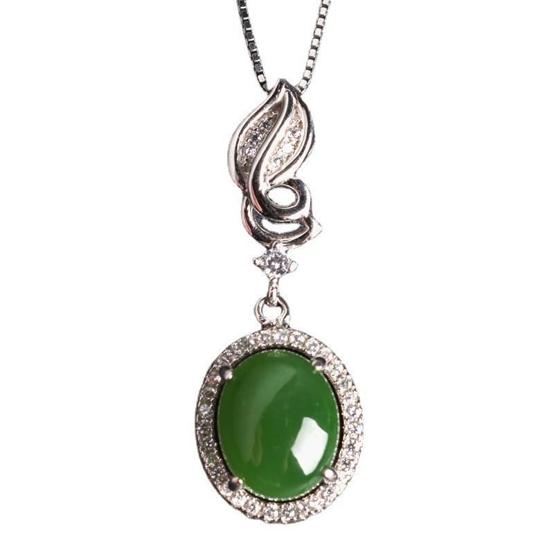 本命年玉石民族风女项饰挂件书925纯银镶嵌和田玉碧玉吊坠礼物