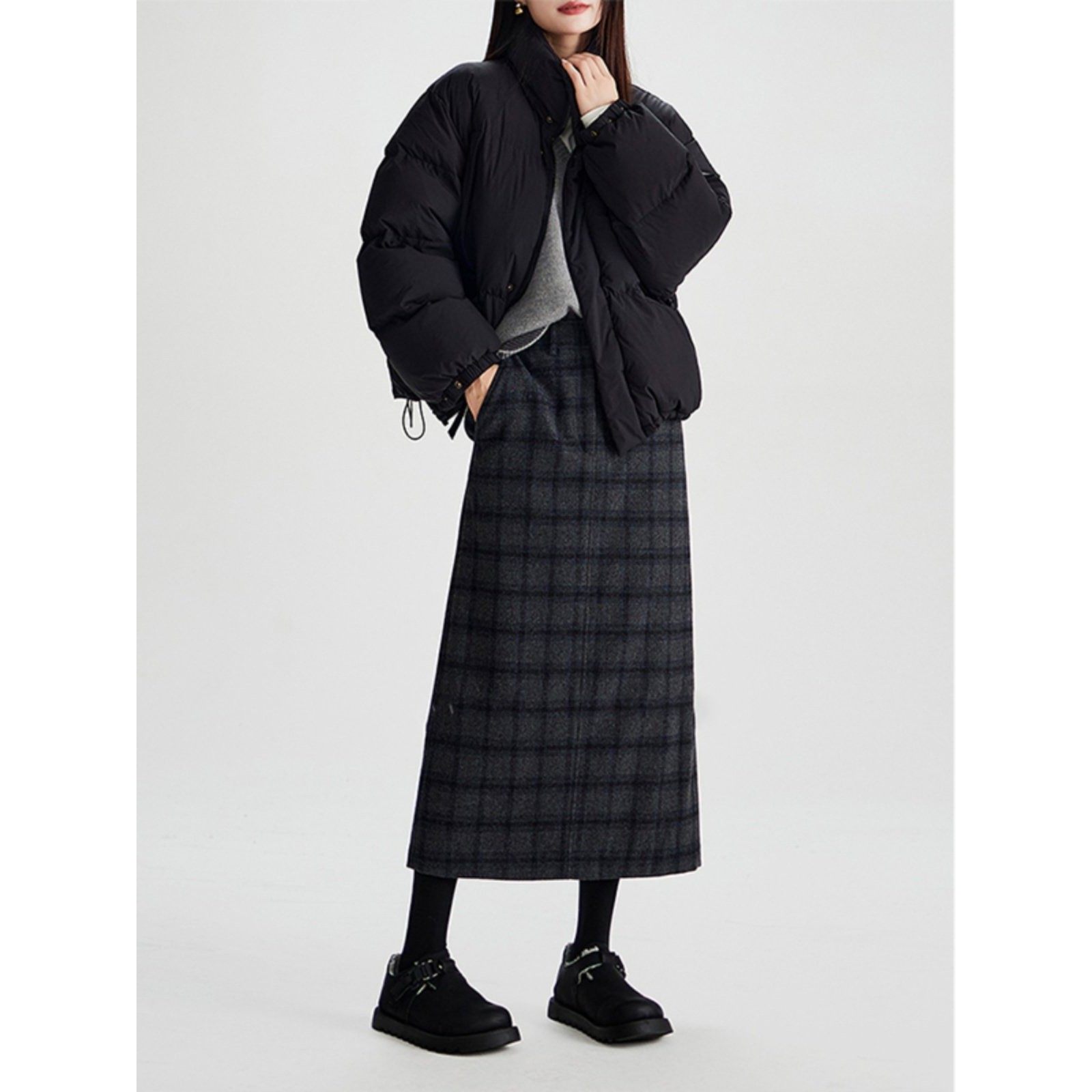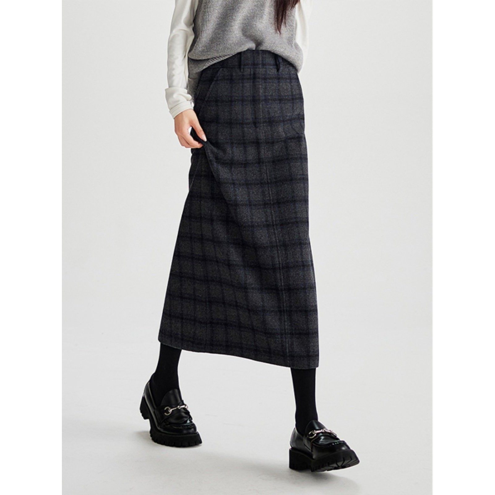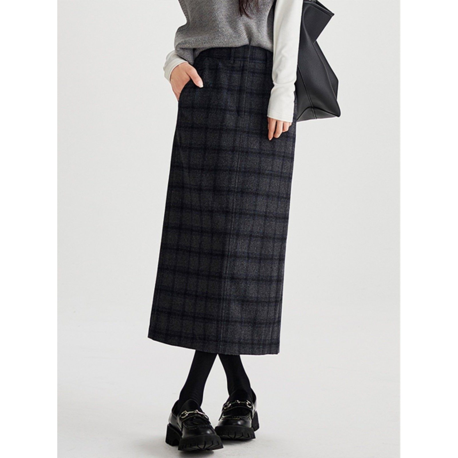 时尚一步裙显瘦半身裙女装秋季新款高腰格子毛呢直筒裙超好看别致
