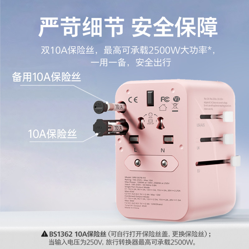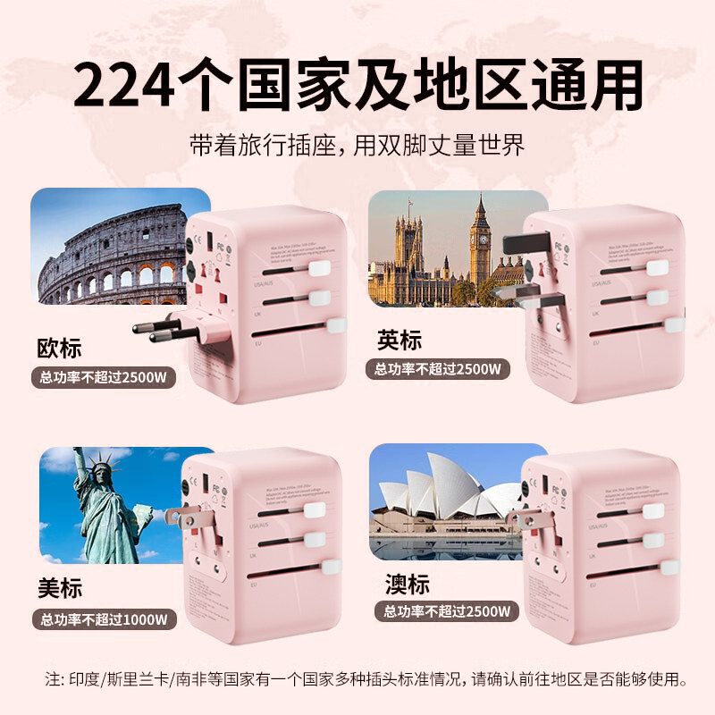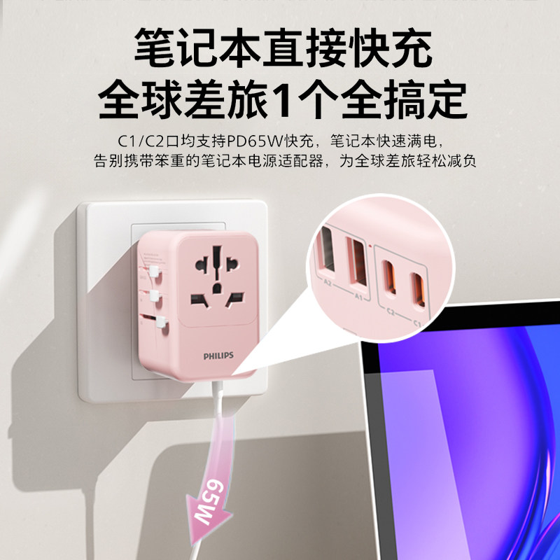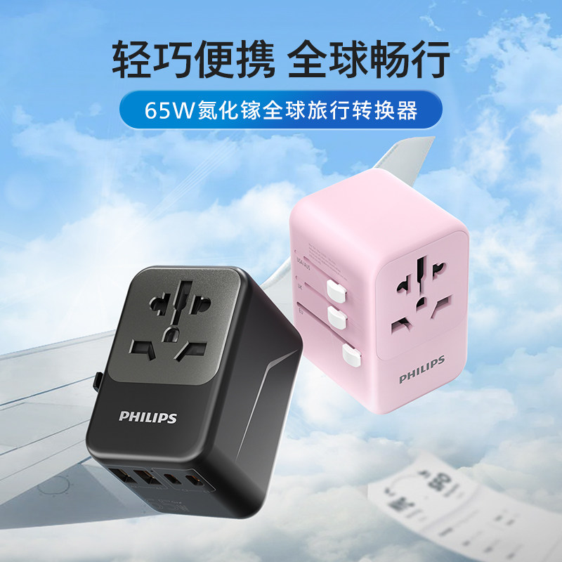 飞利浦转换插头usb多国际通用旅行65W氮化镓快充欧标德标韩美插座