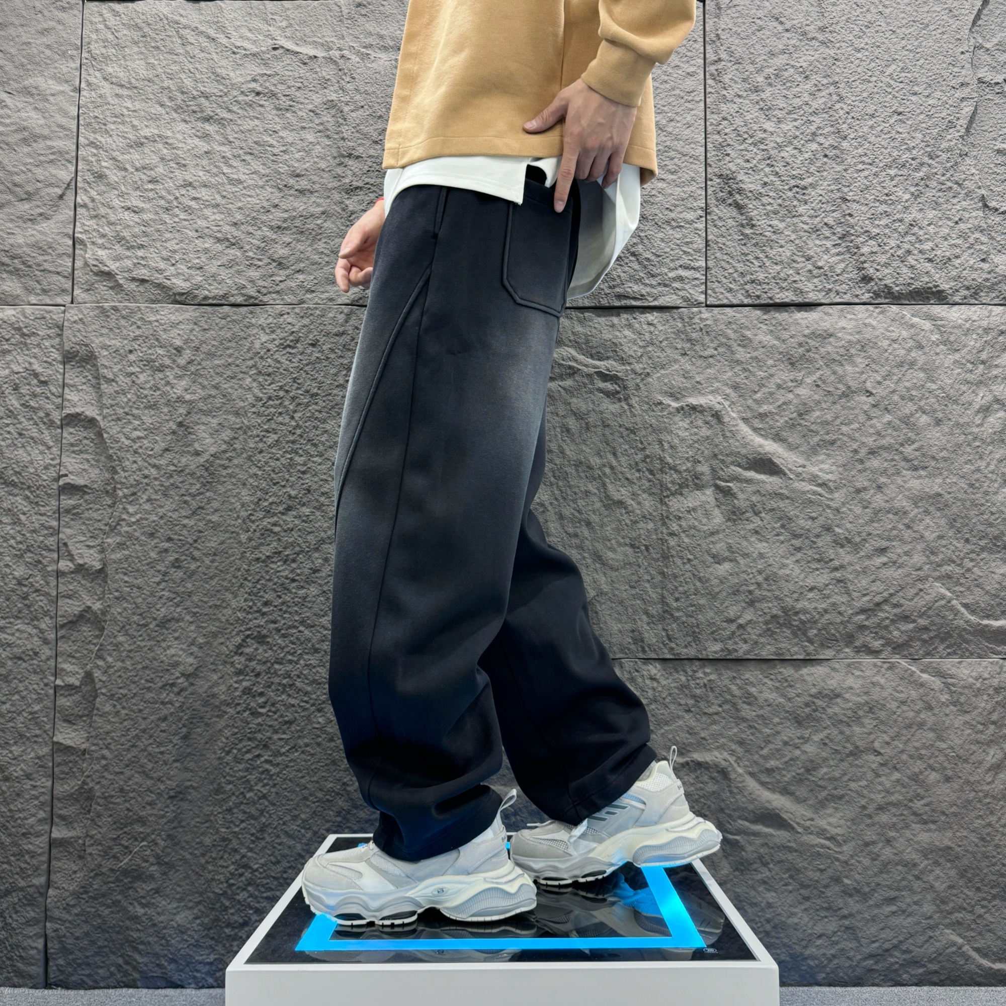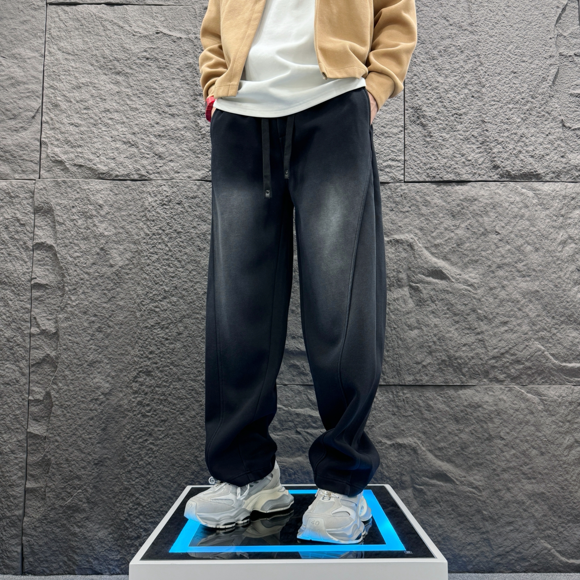 秋冬渐变色宽松直筒休闲裤宽松大码阔腿拖地裤前卫撞色运动卫裤男